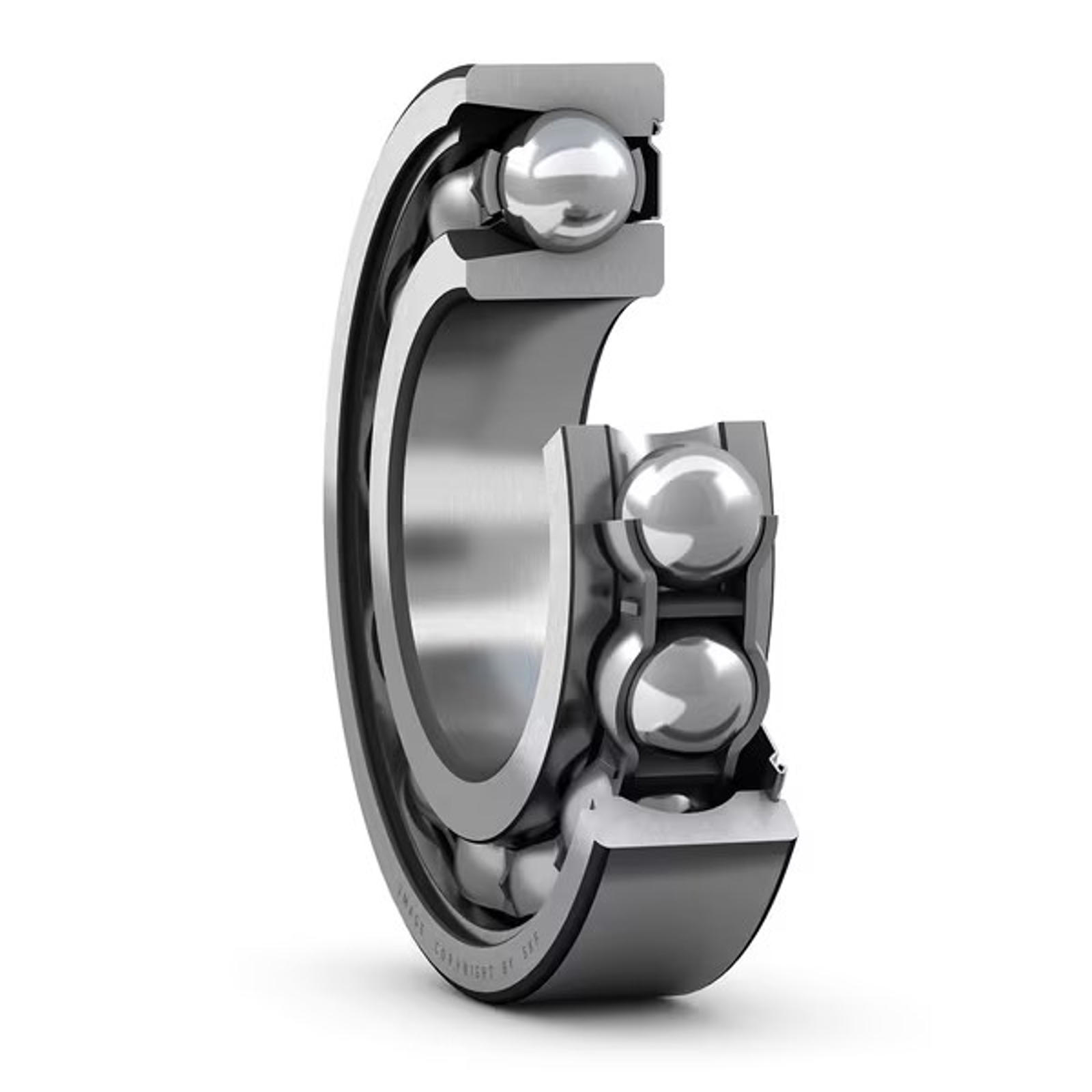 Single row deep groove ball bearings with seals on one or both sides are versatile, low friction and optimized for low noise and vibration, enabling high rotational speeds. They can handle radial and axial loads in both directions, are easy to mount and require less maintenance than other bearing types. The integrated seal can significantly extend the life of the bearing by keeping lubricant in the bearings and contaminants out.