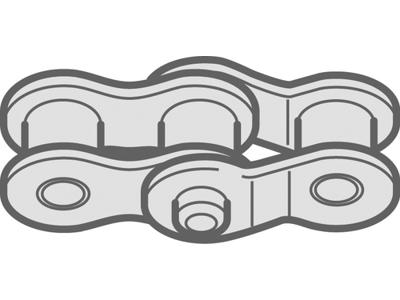 KLD – Dubbelböjd kopplingslänk är en variant som finns för de flesta kedjestorlekar. Den består av en innerlänk och en fast nitad böjd länk och kräver således 2 st kedjelås vid montering i en kedja. Extra info: Kallas även dubbel halvlänk eller dubbellänk.