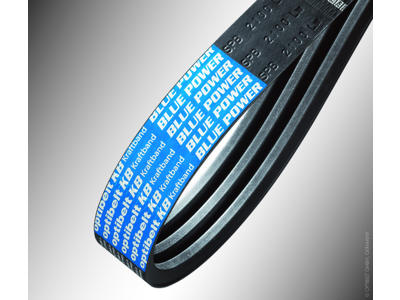 Optibelt BLUE POWER. Högpresterande vävomlagd kraftband med höghållfast aramidkord och väldigt liten sträckning som är särskilt lämpad för stora, tungt belastade enheter.