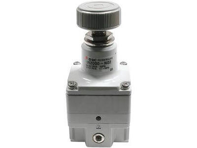 Precisionsregulatorer ur IR-serien är utformade för att vara kompakta och hålla låg vikt. Det maximala inställda trycket har utökats från det konventionella 0,7 MPa till 0,8 MPa. Avluftningsflödet har ökats med en faktor på nära 5 (jämfört med SMC IR201, IR401). Fästet och manometern som finns som tillval kan monteras antingen på framsidan eller baksidan av enheten.