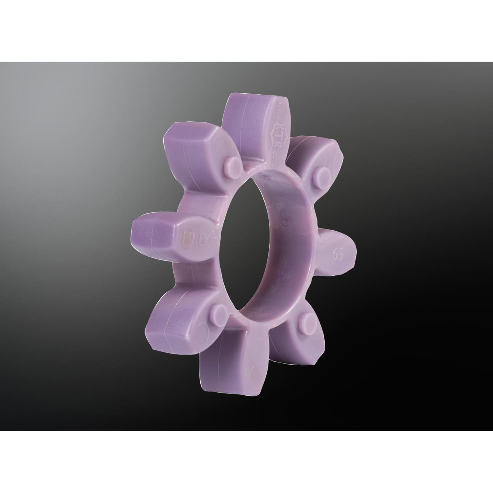 KTR har tagit fram ett nytt standardmaterial för sina kuggkransar. Det förbättrade polyuretanmaterialet T-PUR är motståndskraftigt mot betydligt högre temperaturer och har en betydligt längre livslängd än det tidigare polyuretanmaterialet. Ur visuell synvinkel har vi karakteriserat materialet T-PUR med färgerna orange (92 Shore A), lila (98 Shore A) och ljusgrön (64 Shore D).